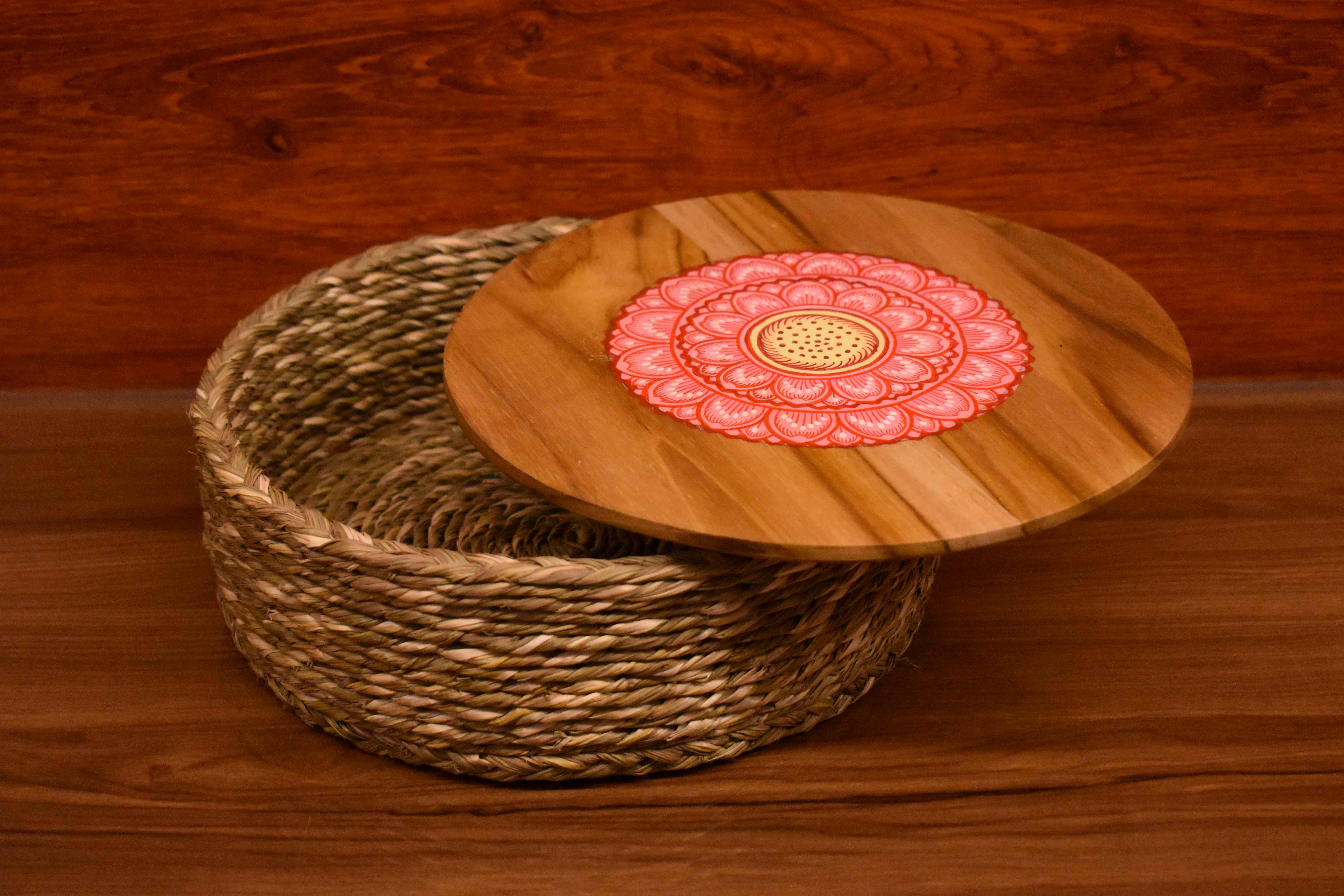 Sabai round box with wooden lid